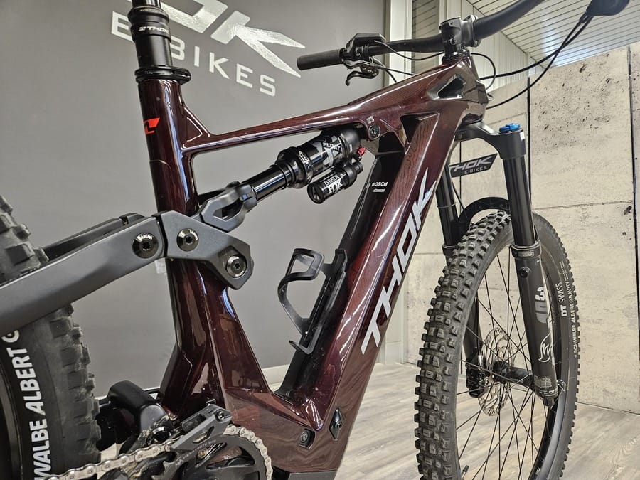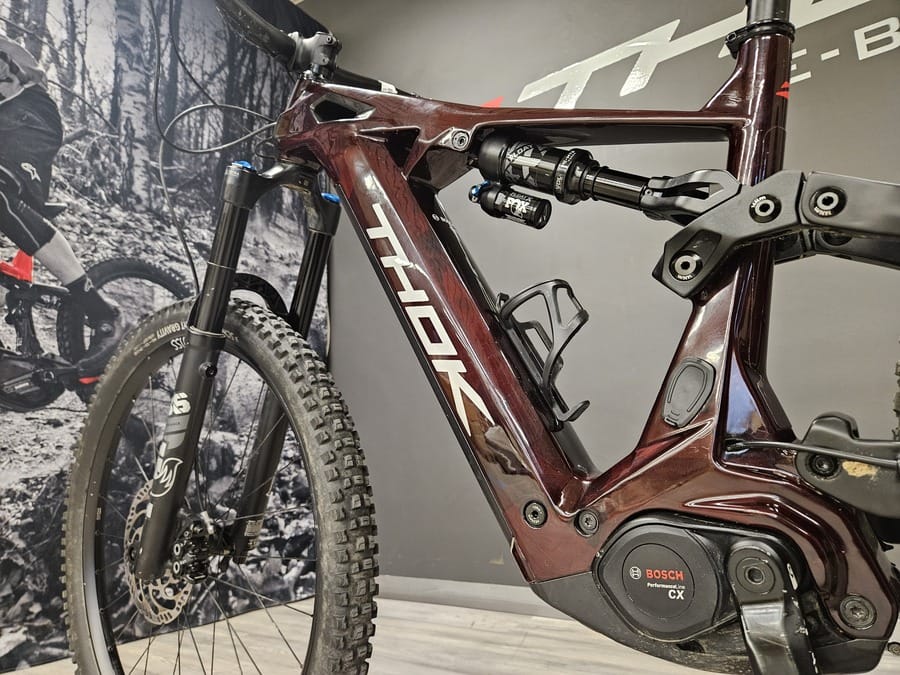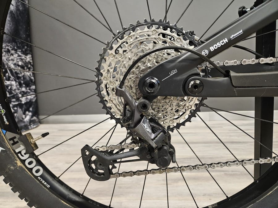 UD-Carbonrahmen, Bosch Performance Line CX Gen 5 Motor, integrierter 800Wh-Akku, 160 mm Federweg vorne, Magura MT5 Bremsen, 29″-Laufräder kompatibel mit Mullet-Setup, Teleskopsattelstütze.