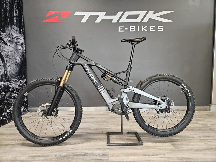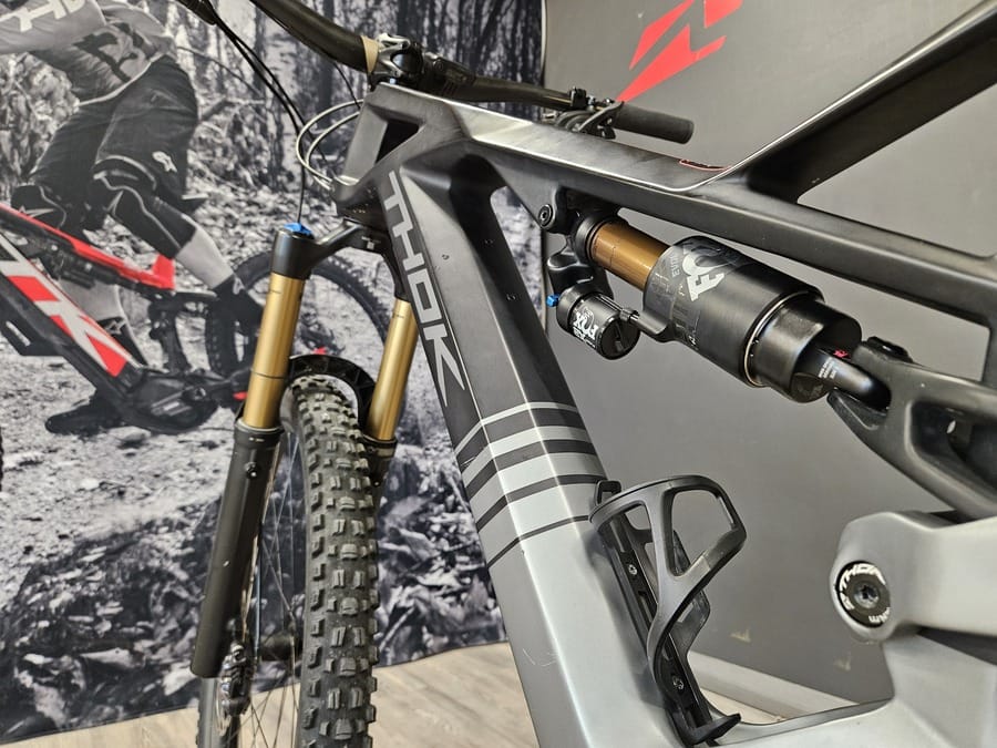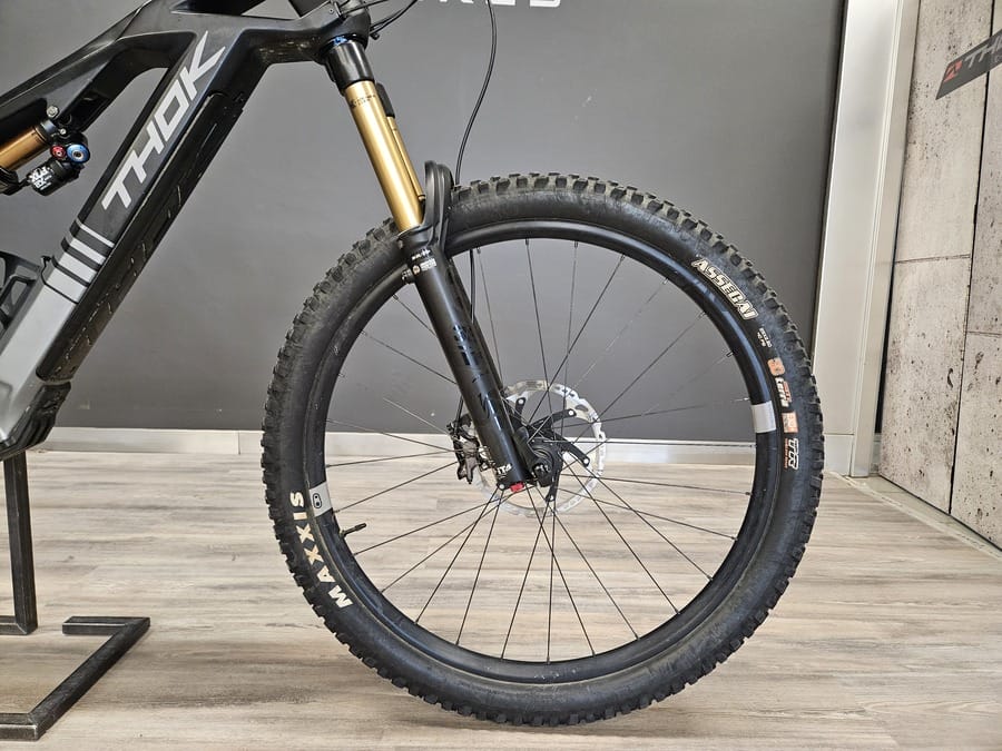 Bicicleta usada para pruebas. Siempre mantenida por el personal técnico de THOK. Reacondicionada. Presenta signos de desgaste en las partes más usadas (bielas, barras de la horquilla…) así como arañazos y pequeños daños en la pintura.