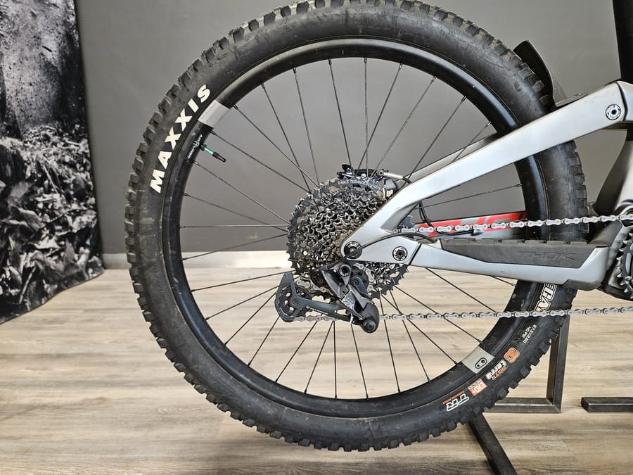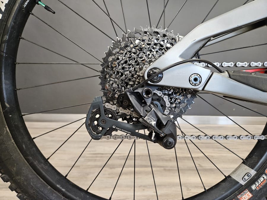 Cuadro de carbono, motor Shimano EP8, batería Shimano 630 Wh, recorrido delantero de 180 mm, frenos Shimano Deore XT, ruedas CRANKBROTHERS, manillar Renthal de carbono, tija telescópica.