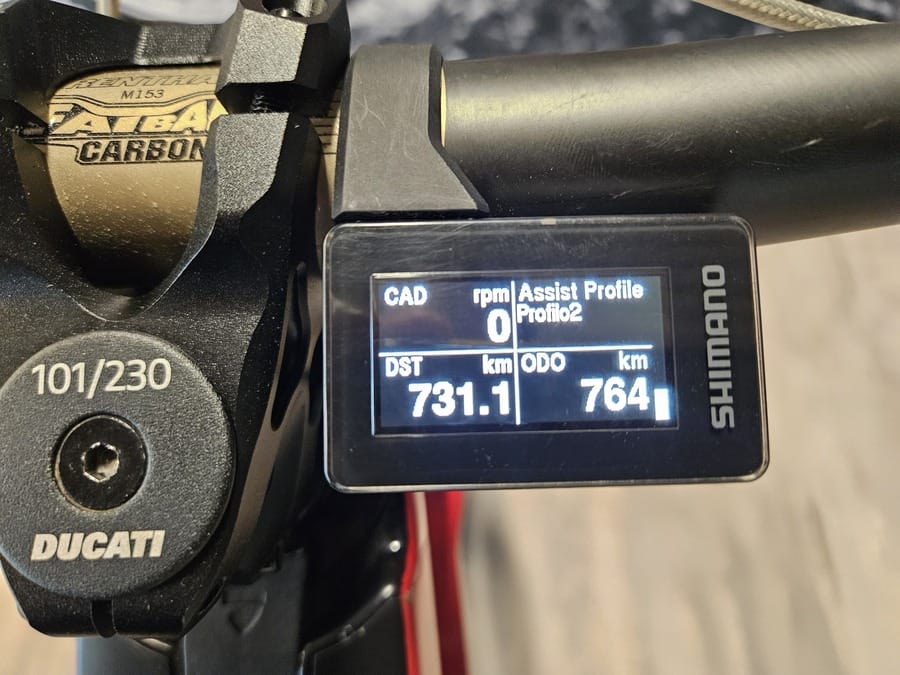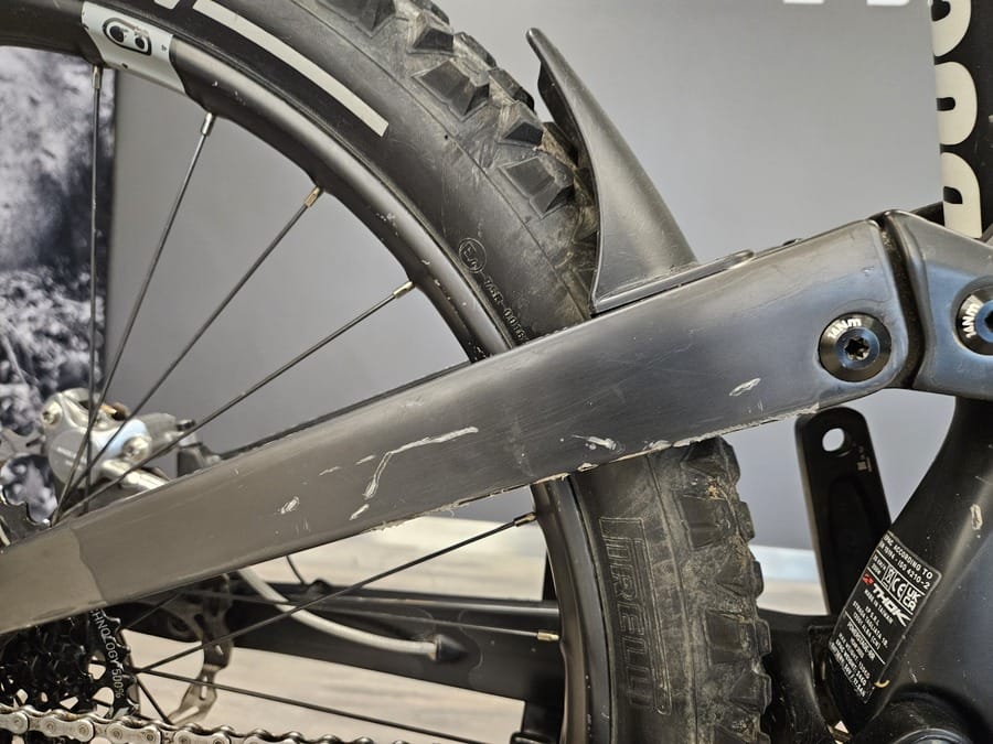 Bicicleta utilizada para pruebas. Siempre mantenida por el equipo técnico de THOK. Reacondicionada. Presenta signos mínimos de desgaste en las partes más utilizadas (bielas, cambio y manillar) y cuadro totalmente protegido con película.