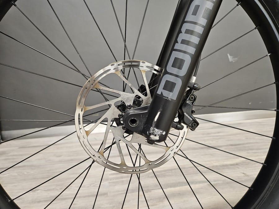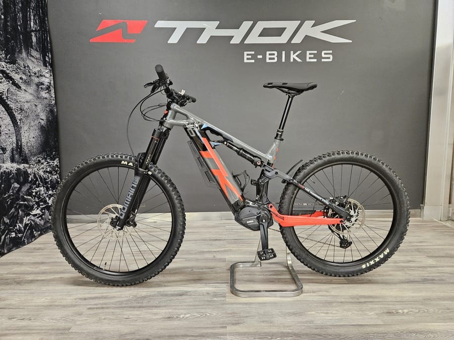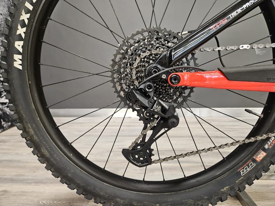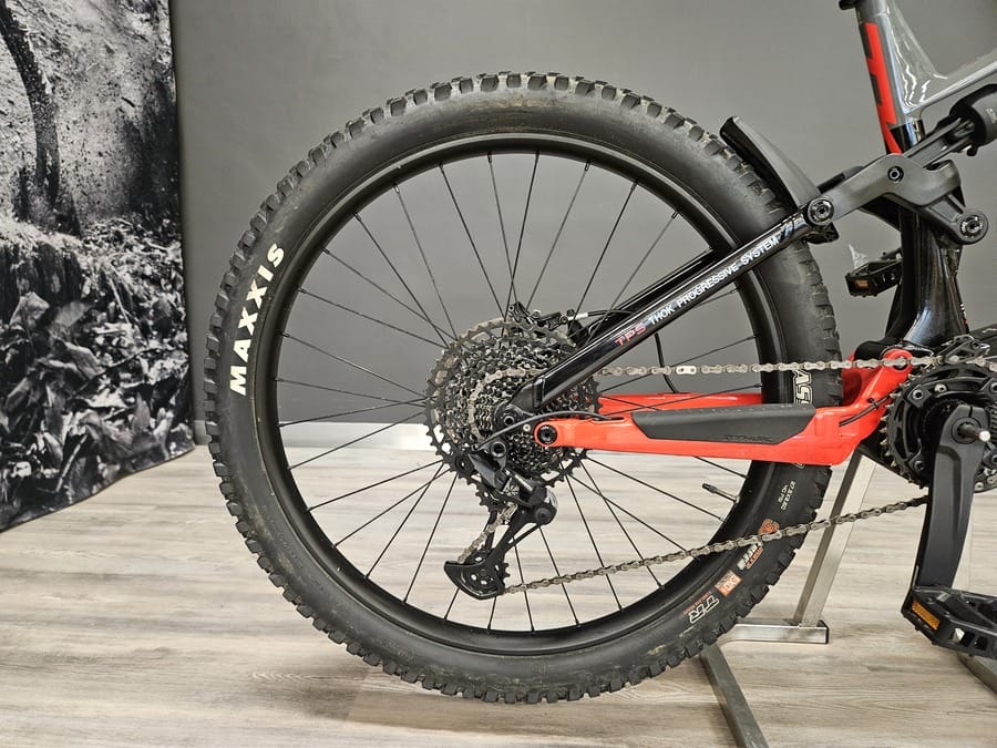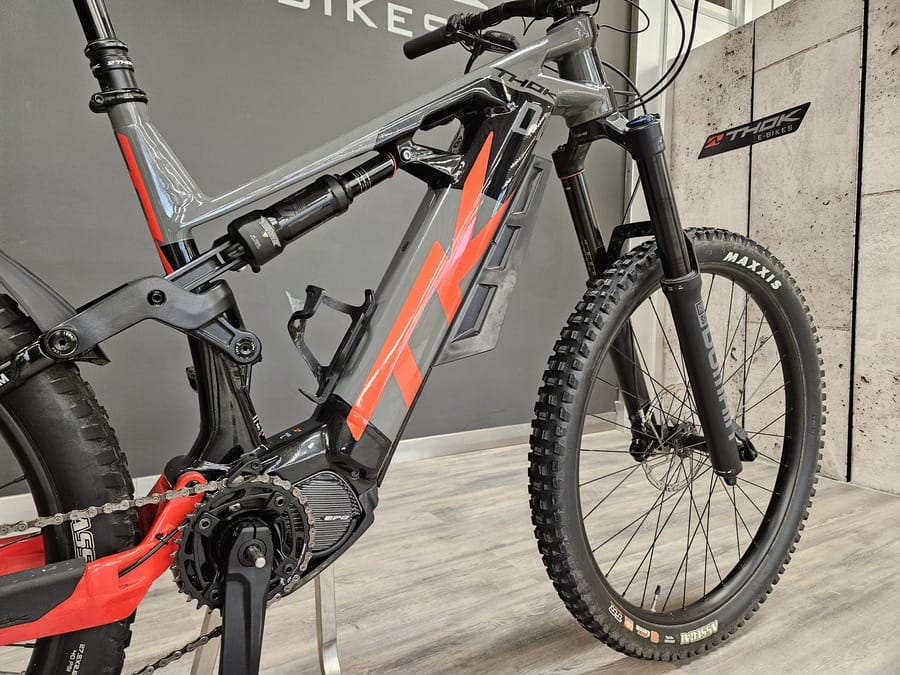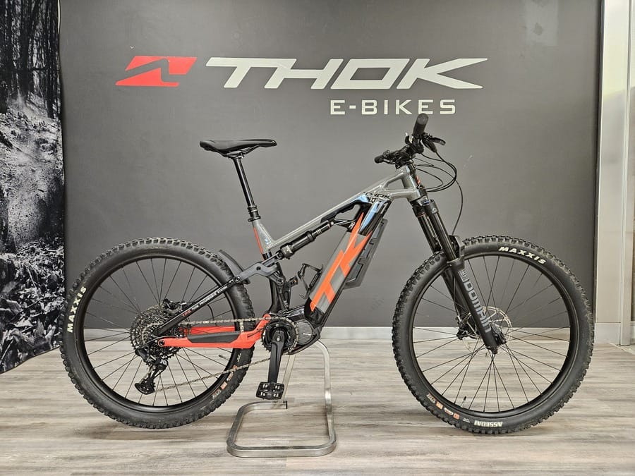 Bicicleta usada para pruebas. Siempre mantenida por el personal técnico de THOK. Reacondicionada. Presenta signos de desgaste en las partes más usadas (bielas, barras de la horquilla…) así como arañazos y pequeños daños en la pintura.