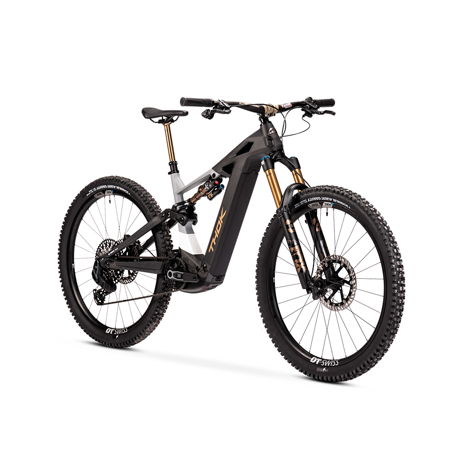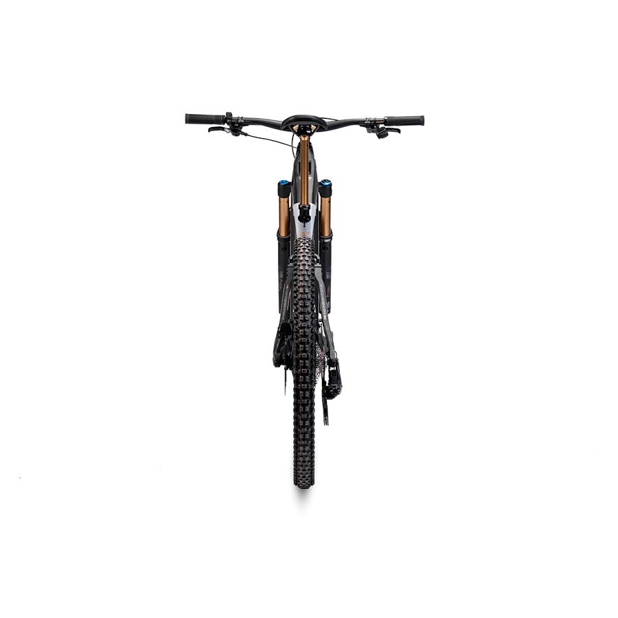 Cadre complet en fibre de carbone avec débattement avant de 160 mm et arrière de 150 mm, moteur Bosch Performance Line CX de 100 Nm, batterie de 800 Wh (extensible avec le Range Extender Bosch PowerMore de 250 Wh), fourche Fox 38 Float Factory, amortisseur FOX Float X Factory, freins Magura Gustav Pro avec disques 220/203, pneus radiaux Schwalbe Albert Gravity Pro, roues DT Swiss carbone HXC1501, transmission Sram X0 Eagle AXS, tige de selle télescopique Fox Transfer Factory Kashima, guidon Renthal FatBar Carbon.